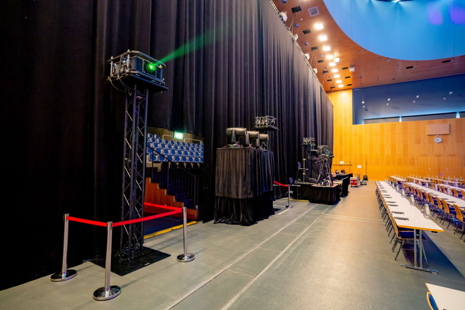 While LED walls are widely used in event production, projection remains the most effective solution in situations where rigging options are limited or where fast installation is required.